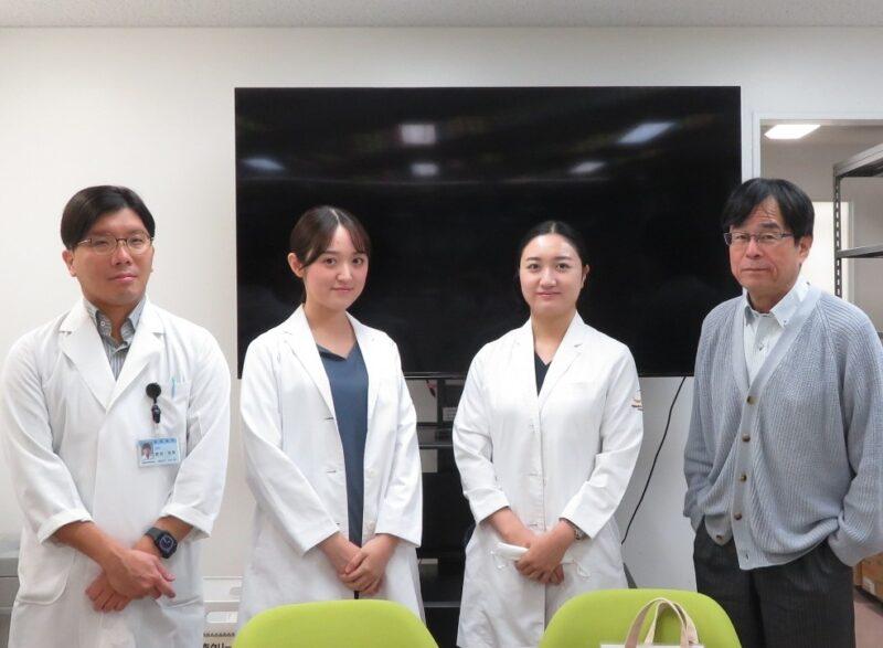 11月からの研修医 2025.11.04 2025年11月からは2名の研修医が放射線科を研修いたします。中山瑞希(なかやまみずき)先生と松下仁美(まつしたひとみ)先生です。お二人とも主に画像診断部門を研修いたします。どうぞ宜しく御願いいたします。 左から肥田・松下・中山・吉満
